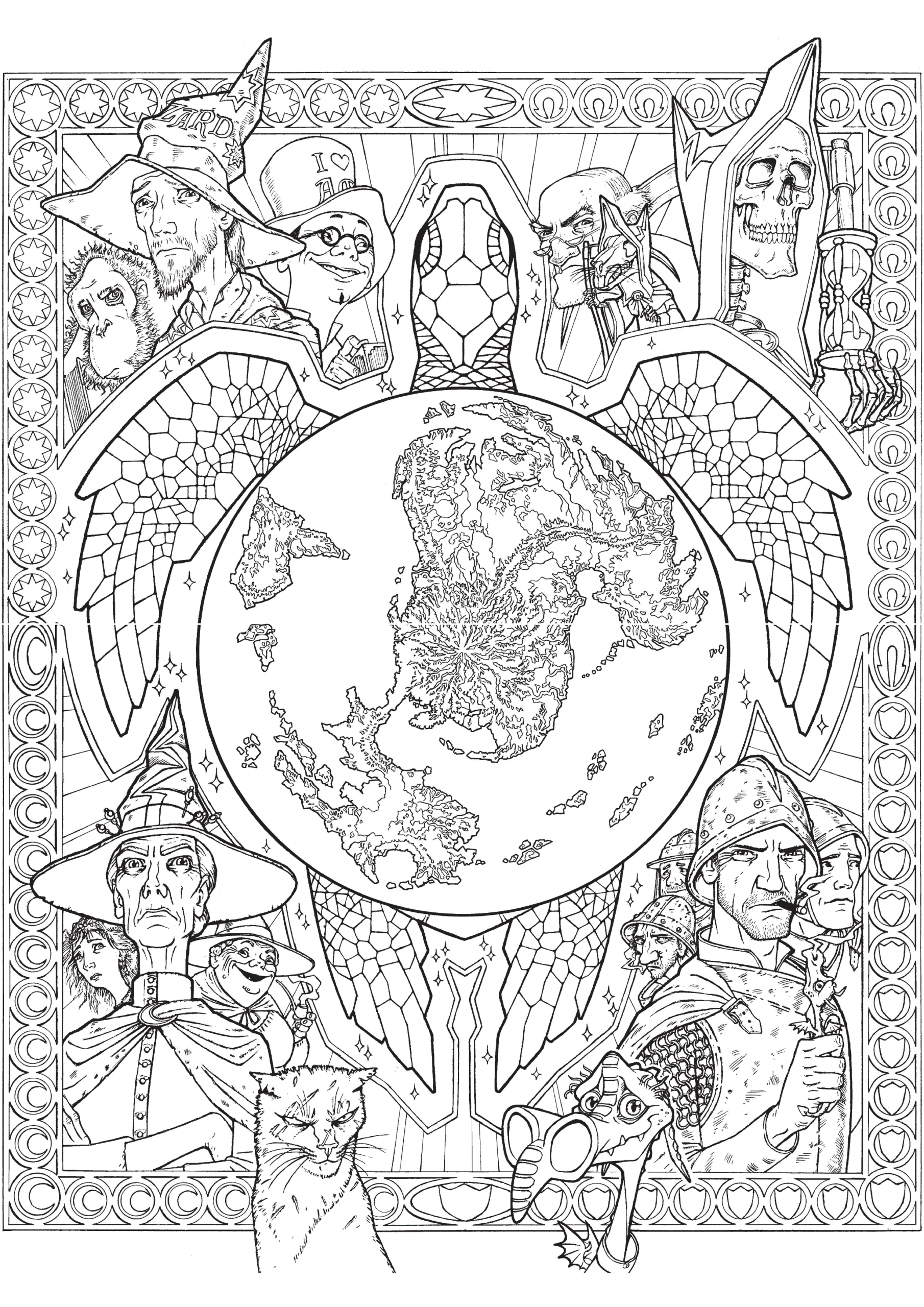 You can get a copy of the full colouring book from: Gollancz | The Discworld Emporium | Discworld.com | Bookshop.org | Amazon | And other book retailers and etailers.