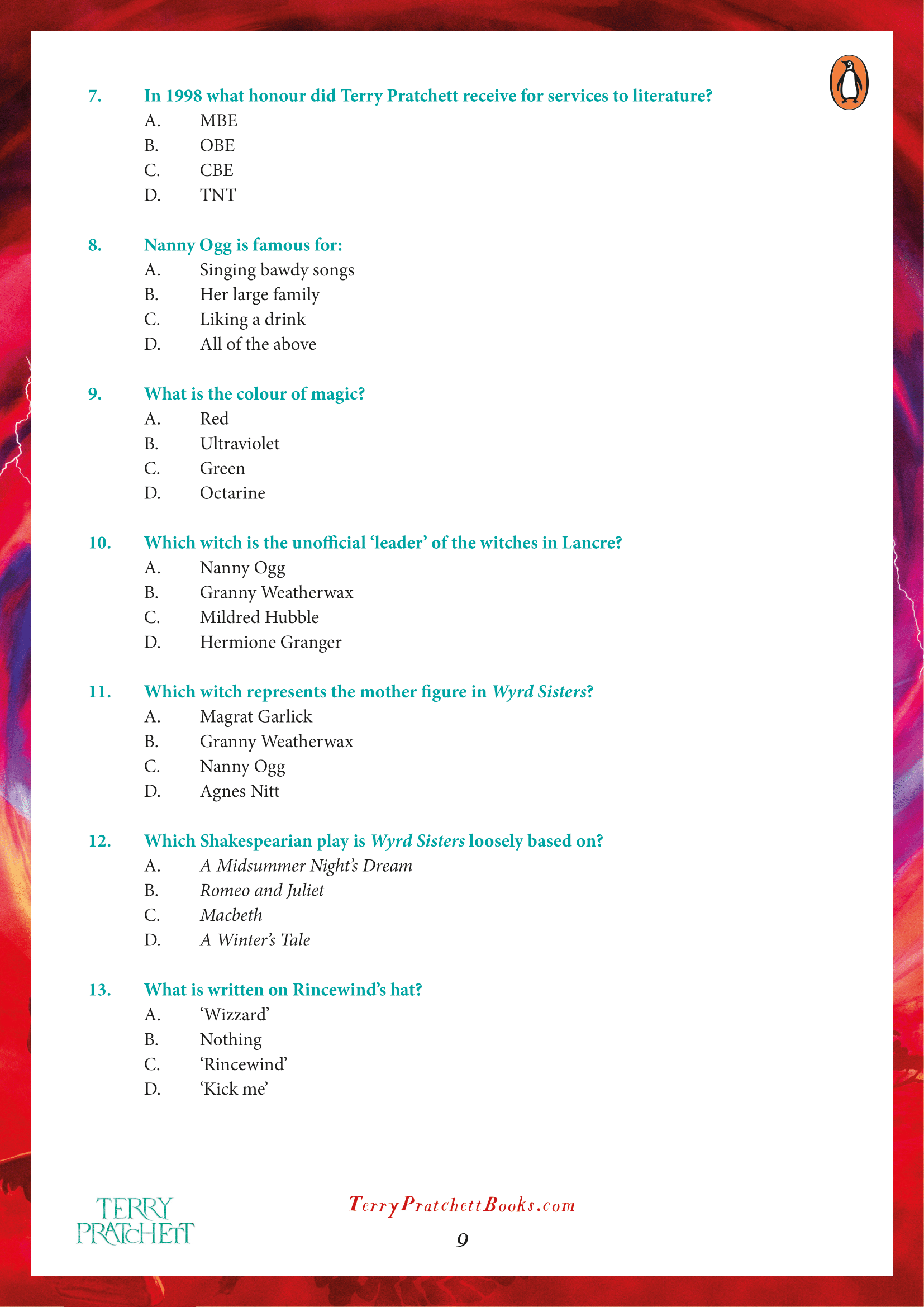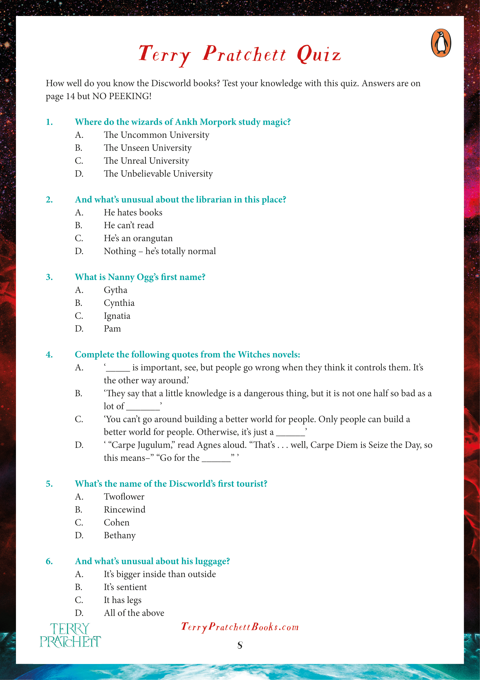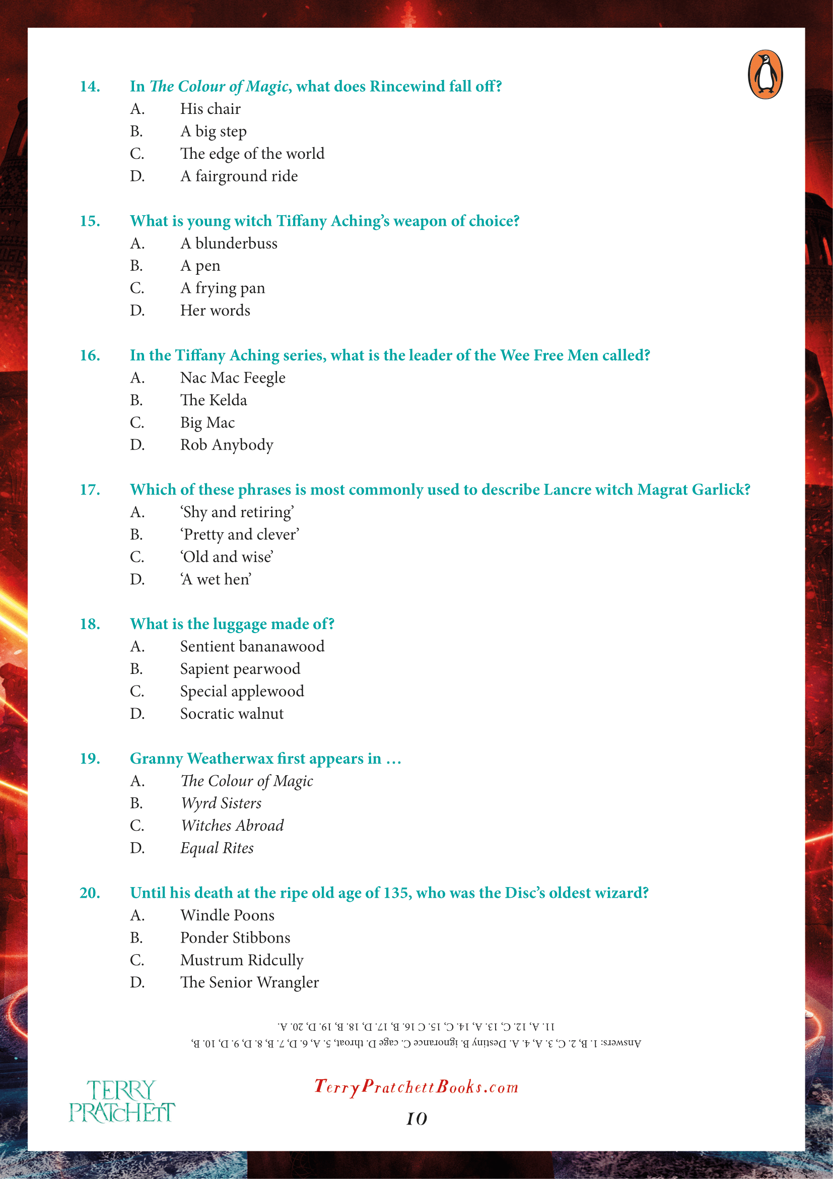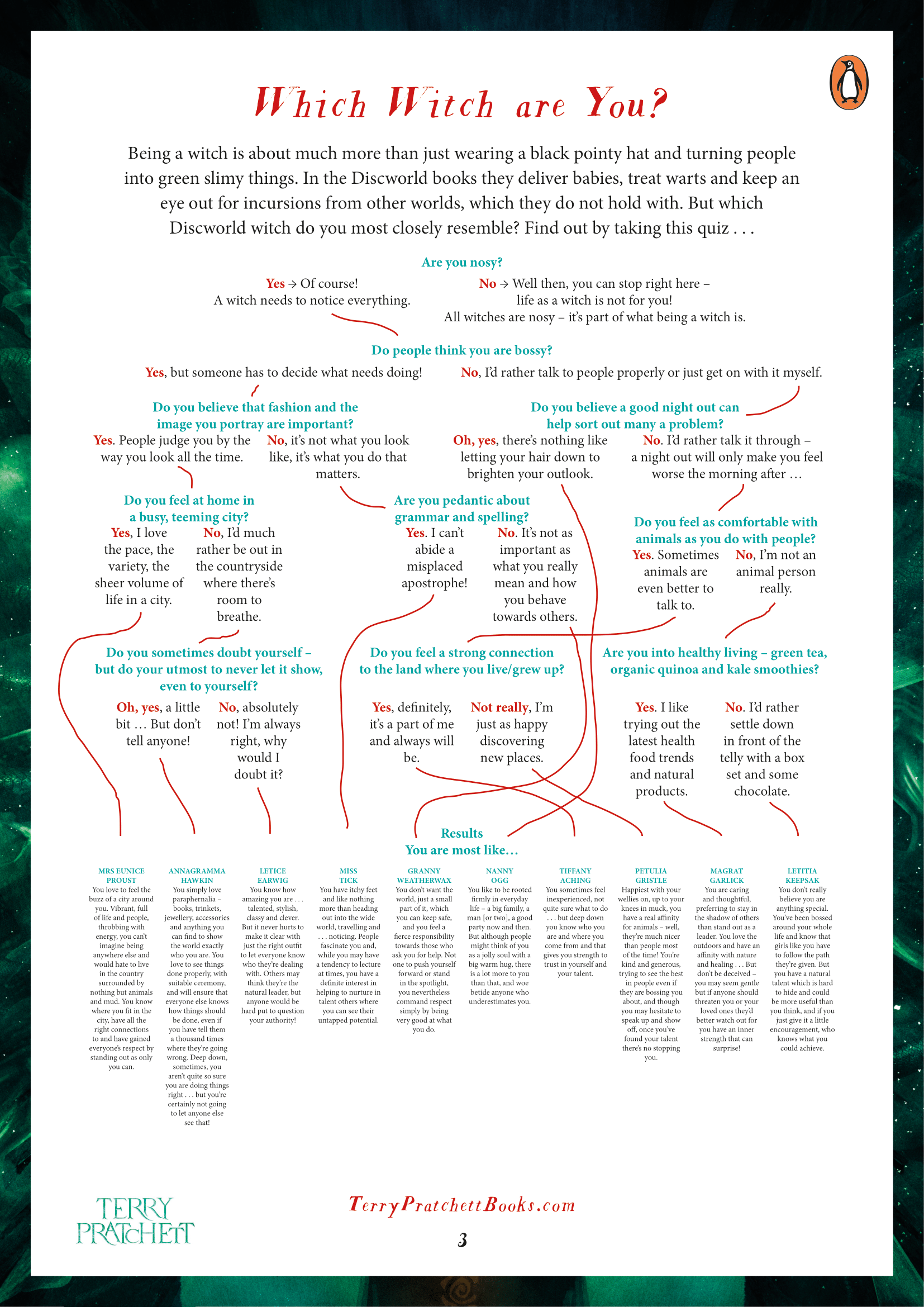 Whether you want to find out which Witch you are, or test your Discworld knowledge, here’s some quick activity sheets to do just that. (c/o of Penguin Books)